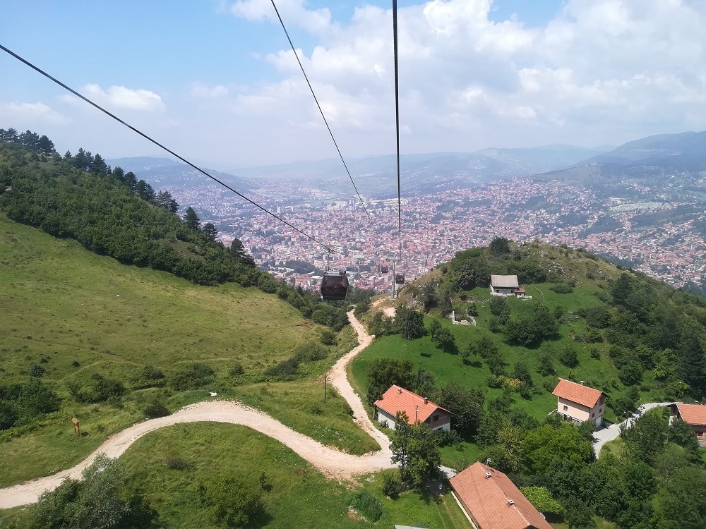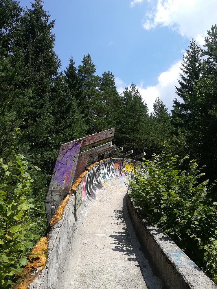 Prenons de la hauteur, encore plus que chez nos hôtes. Un téléphérique amène en haut de la colline sud. De là, on a une vue panoramique sur l’ensemble de la ville. C’est aussi un départ de randonnée ainsi qu’un site sportif. En effet, les Jeux Olympiques d’hiver 1984 ont eu lieu à Sarajevo, et ici, au fond des bois, la végétation prend le dessus sur la piste de bobsleigh. Le tremplin de saut à ski, abandonné à quelques kilomètres de là est aussi une photo connue.